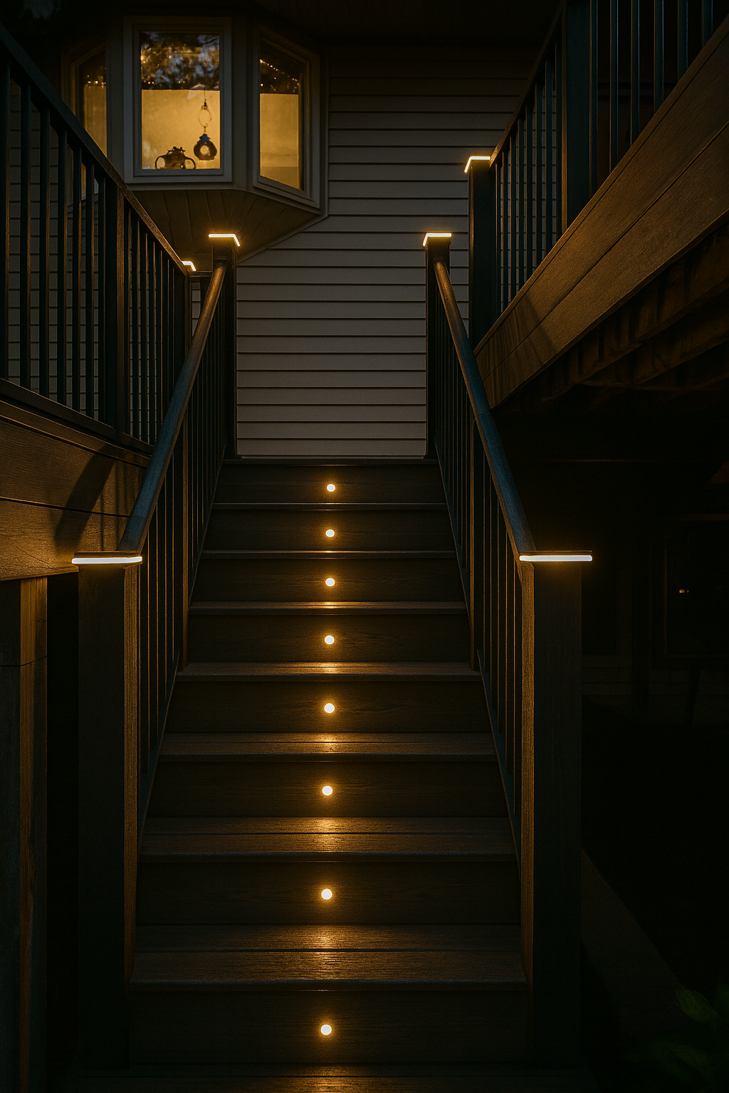 Stair lighting addresses critical safety concerns while contributing to overall design aesthetics. Recessed step lights or LED strip installations ensure visibility on stairways, preventing accidents during evening hours. Strategic riser lighting creates dramatic visual effects that highlight deck architectural features while guiding movement through multi-level outdoor spaces.