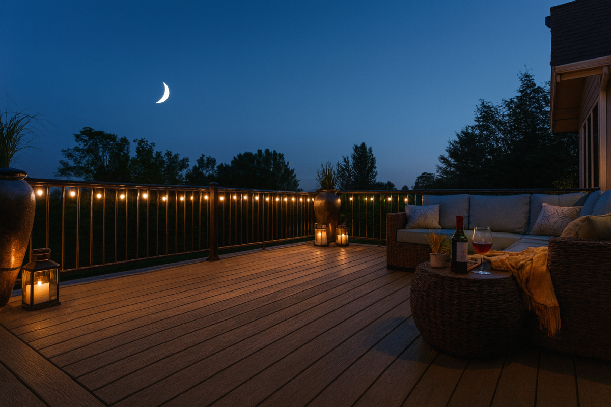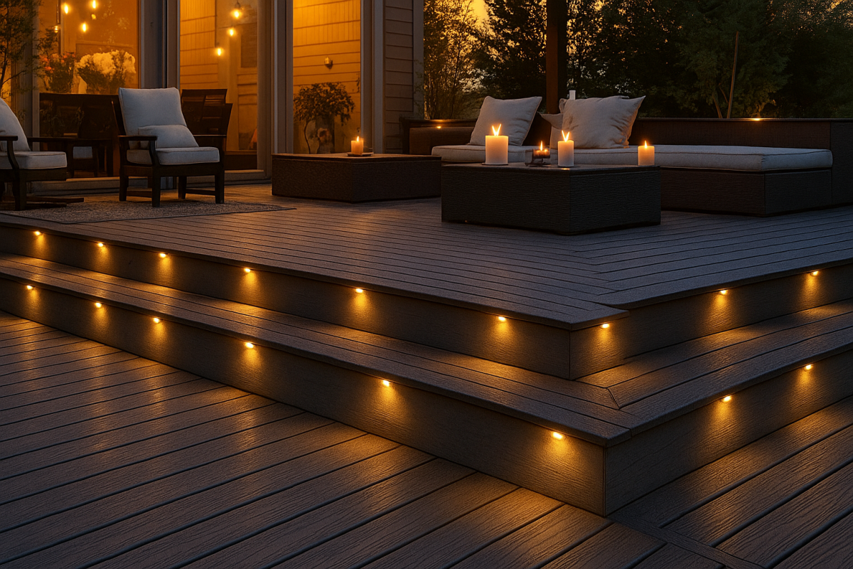 Under-deck lighting expands usable square footage, creating comfortable spaces for all weather conditions and times of day.