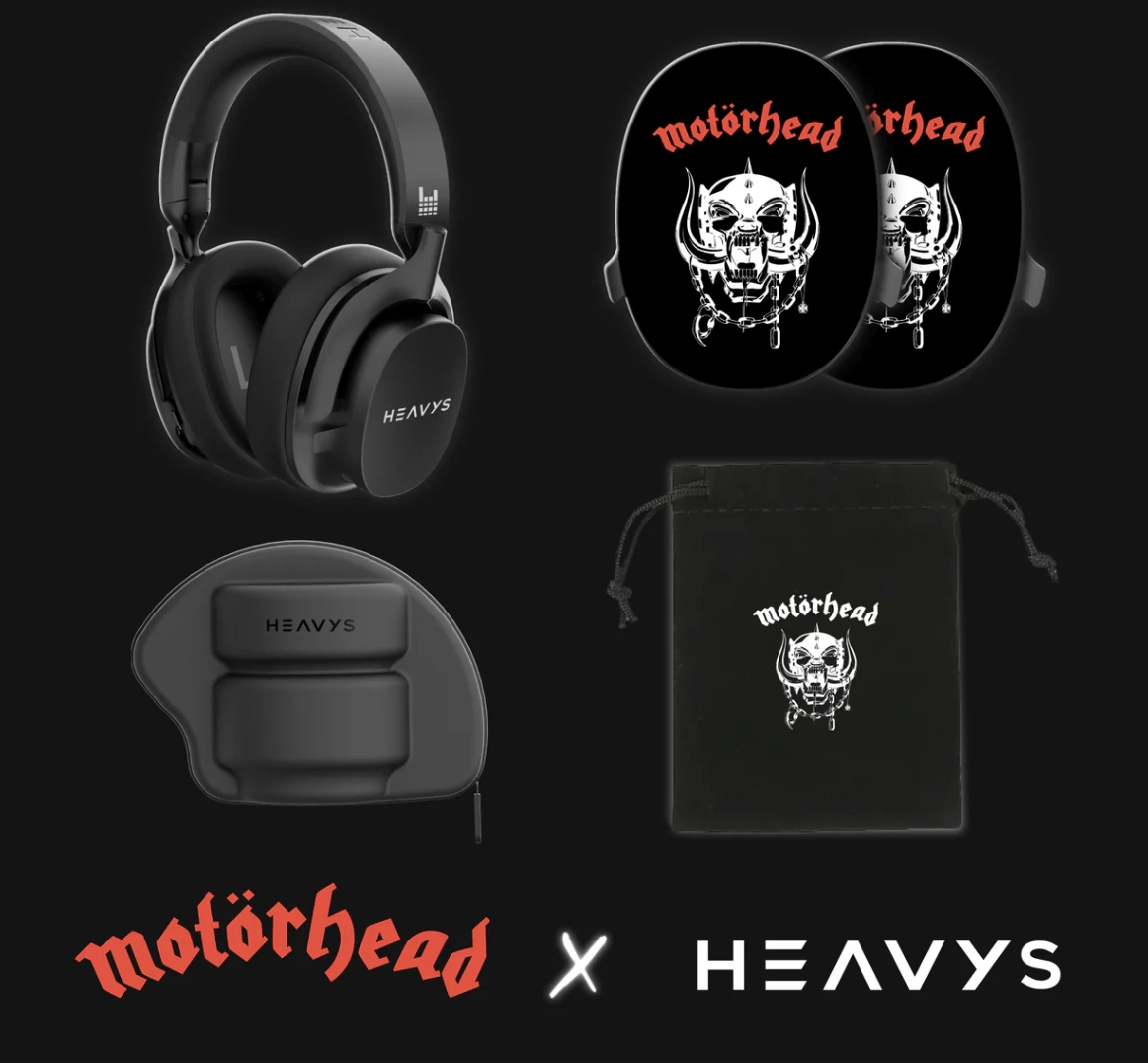 The Motörhead Limited Edition Shells are snap-on ear cup covers for HEAVYS H1H headphones, featuring artwork from Motörhead’s official visual catalog. They are part of HEAVYS’ interchangeable shell system, which lets owners swap designs without tools in under 10 seconds. The collaboration is officially licensed through the Motörhead estate, with royalties paid on every unit sold.