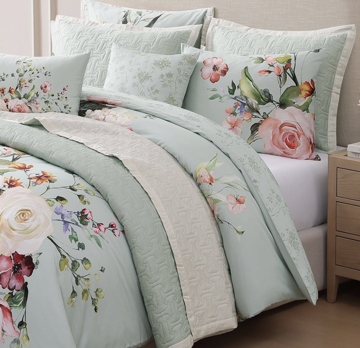 (Rose on Misty Green 8-Piece Reversible Comforter and Coverlet Set)