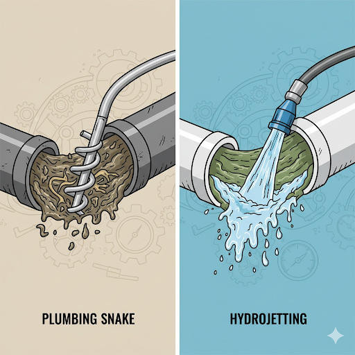 Choosing well protects pipes, controls costs, and reduces downtime. Snaking offers rapid relief for simple obstructions. Hydro jetting provides a deeper clean that removes sticky residue and fibrous material, which supports longer intervals between service visits.